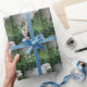 Este belo papel de embrulho apresenta uma fotografia de uma ovelha fofa e fofa. As ovelhas estão cercadas por flores silvestres e erva comprida e comem algumas folhas de forma vertiginosa. Tem um casaco de lã branco grosso e um nariz preto fofo.