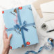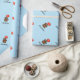 Papel de embrulho para ursinho de peluche azul personalizado para festa de chá de fraldas ou primeiro aniversario. Design de papel empacotante elegante com nome de criança e desenho animado com balão vermelho. Cor de fundo personalizável, ie. cor-de-rosa claro para menina, amarelo azul ou neutro. Padrão de ursinho de criança bonito para novos bebês/pais (mãe e pai). Design de chic pré-disquete. Faça seu próprio presente de celebração para neto/neta/neta. Ilustração de crianças adoráveis com número de idade personalizável no balão.
