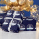 Barcos clássicos estilizaram papel de embrulho para albin 25. Dourada crista de Albin colocada sobre fundo azul rico marinho. Enrole o presente perfeito de barco no papel perfeito especialmente projetado para o dono ou fã de Albin 25.