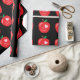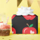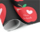Um papel de embrulho preto que vos lembrará de um quadro com o padrão de uma maçã vermelha com um pequeno dentro de coração cor-de-rosa. Personalize o texto com o seu. Ideal para enrolar presentes de professores.