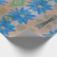 O campo de flores silvestres está coberto de lindas flores azuis de verão. As pétalas desta impressionante imagem floral de aquarela são diferentes tons de azul em torno de um centro amarelo alegre. As flores azuis estão sobre um fundo neutro atraente, então elas são atraentes e bonitas.