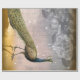 Um belo pavão vintage rolando e olhando para o céu noturno. Rosas negras e brancas no céu de fundo.