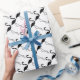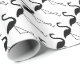 Inflamingos pretos elegantes num fundo branco decoram este papel de embrulho tropical e clássico, fazer-o perfeito para um aniversário, chá de casamento ou qualquer ocasião especial de Verão.