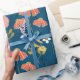 Padrão de flor de rabo amarelo e laranja claro sobre fundo azul. A cor de fundo pode ser editada.