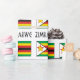 A Bandeira do Zimbabué tem sete faixas. Um é preto e no centro. Dois são vermelhos e estão no topo e no fundo da faixa preta. As listras amarelas delimitam as vermelhas, com bordas verdes em cada faixa amarela. Um triângulo branco aparece à esquerda com uma estrela vermelha e uma ave amarela do Zimbabué. Nesta design, a bandeira aparece com a palavra ZIMBABWE em letras negras. Parece legal neste papel de embrulho.