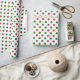 Um papel de embalagem de Natal construído com um padrão de bolinhas vermelho e verde sobre um fundo branco. Personalize o fundo branco entre outras opções.
