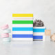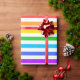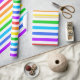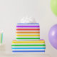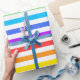 Um papel de embalagem projetado com um padrão listrado com cores brilhantes do arco-íris e branco.
