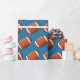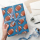 Papel de embrulho exibido com um impressão de futebol esportivo em fundo azul. Personalize este item ou comprar como está.