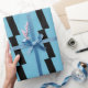 Este papel de embalagem listrado e colorido, usando meu padrão original de listras azul e pretas, é uma forma única de embrulhar presentes para o Natal, aniversário, apreciação de professores, ou qualquer outra ocasião. Corresponde a muitos dos produtos disponíveis em www.zazzle.com/SocolikCardShop*, incluindo gravatas, e outros presentes e cartões. Todos os direitos reservados © 2013 Alan & Marcia Socolik