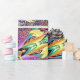 Os guindastes orientais excelentes sobrevoam uma manta de retalhos de tecidos coloridos em designs e padrões fantasiosos. Os guindastes, normalmente marfim, são queimados a um ouro pálido - pode-se imaginar por um sol de pôr.