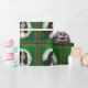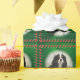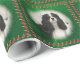 Este é o Natal verde, embrulhando um papel com uma fotografia original de um tricolor Cavalier King Charles Spaniel, cercado por canas doces.
