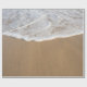 Papel embrulhado coberto por uma imagem de água do oceano se lavando na praia.
