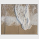 Papel embrulhado coberto por uma imagem de água do oceano se lavando na praia.