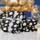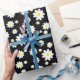 Este belo papel de embrulho personalizado apresenta um padrão margarida bonito em uma cor preta de fundo, perfeito para Dia de as mães ou qualquer outra ocasião.