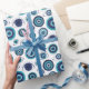 Papel de embrulho branco e azul mediterrânico com padrão mau grego moderno, ilustrado à mão.