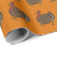 Um belo peru de ação de graças a trotar ao longo deste papel de embrulho laranja