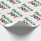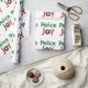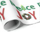 Um modelo de Natal bonito embrulhando design de papel com os textos "paz" e "alegria" com uma árvore de Natal e uma coroa de Natal no texto seria perfeito para embrulhar seus presentes de natal. Escolha entre vários comprimentos e estilos diferentes.
