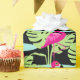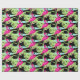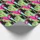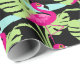 Papel de embrulho com estampamento, com estampamento, de pássaros, cor-de-rosa, Flamingo. Um flamingo branco, cor-de-rosa, numa piscina de água com palma tropical folhas de papel tecidular num fundo preto que pode ser mudado para a sua escolha de cor, se necessário. Arte gráfica original e design por Sarah Trett www.sarahtrett.com para www.mylittleeden.com no zazzle.
