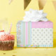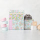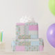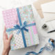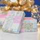 Um rolo de Giftwrap chic, com um padrão bonito e nostálgico de retalhos de Dogroses cor-de-rosa em um fundo azul-céu com bolinhas, listras e xadrezes correspondentes. Parte da coleção Posh & Painterly 'Rosy Posy', este padrão pode ser facilmente ajustado para ajustado qualquer rolo de papel de enrolamento.