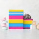 Papel de enrolamento com bandeirola de pansexualidade, com listras arco-íris de cor rosa, amarela e azul; design de orgulho pan