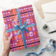 Esta arte, por mim, Kristie Hubler, neste papel embrulhado / presente, é uma arte folclórica abstrato, feminina, com balanças, espirais, curvas, espirais, pontos, e flores dentro de xadrez, em pinks, salmão, laranja, ouro, íris de periwinkle profunda, beringela ou castanho avermelhado escuro