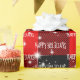Estrelas brancas brilhantes e texto Feliz Feriados na xadrez de búfalo vermelha e preta. O texto pode ser alterado.