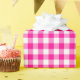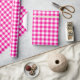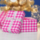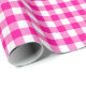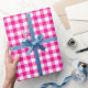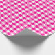Um papel de embalagem projetado com um padrão de xadrez rosa e branco quente. Personalize o fundo branco entre outras opções.