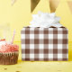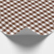 Um papel de embalagem projetado com um padrão de xadrez de verificação em castanho e branco. Personalize o fundo branco entre outras opções.