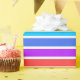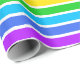 Um papel de embalagem projetado com um padrão listrado com cores brilhantes do arco-íris e branco.