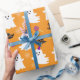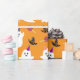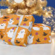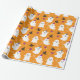 Papel de embrulhamento fantasma bonito para o Dia das Bruxas. O amante é Laranja com um padrão que combina fantasmas, chapéus de bruxa, piranhas, figuras de flocos de neve.