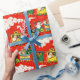 Outro papel de embrulho retrô com Papais noeis Trains.