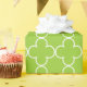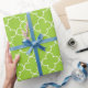 Papel de embrulho de padrão de quatrefoil verde-maça. Cor de fundo personalizável com impressão de marroquino branco. Folheto bonito para o aniversário elegante, Natal e festa de casamento.