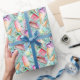 Adicione um toque único aos seus presentes com este elegante rolo de papel de embrulho com gelado colorido e picolés num fundo azul bonito