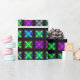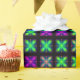 Arte digital repetindo padrão / papel de parede / impressão de um padrão de onda legal com cruzes x neon em roxo, verde e azul.