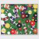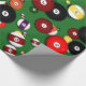 Arrume-os! Este design maravilhoso e caprichoso é camadas geradas por computador de bolas de bilhar de vários tamanhos. . . desde a bola branca de ponta sólida até o 15 listrado de burgundy, este magnífico papel de embrulho repete o padrão a cada três pés. Seja seu aniversário ou Dia de os pais, este é o toque de coroação em seu maravilhoso presente. . . e você tem tantas opções para fitas e arcos!