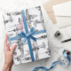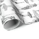 Desenhos em linhas de avião, em preto e cinza, sobrepostos e de vários ângulos, sobre fundo branco. Um papel de embrulho de presente perfeito para Dia de os pais, ou outras ocasiões especiais.