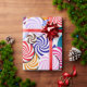 Peppermint, wintergreen, cerveja de raiz, caramelo, uva — quantos sabores você pode identificar? Este fabuloso design é camada sobre camada de "doces" em tamanhos variados. Gerado por computador e dimensionado para maior interesse visual, este charmoso design é uma maravilhosa adição ao seu feriado. Este maravilhoso presente embrulhado é uma opção fabulosa para o seu embrulho de férias — além de ser um design ousado e atraente, oferece-vos inúmeras opções para arcos e adornos e é certo que apelam à criança em todos nós.
