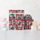 Faça com que este plástico vermelho, branco e arrojado tenha alguns flocos de neve simples e a palavra alegre adicionada para elogiar suas fotos da família. Design o seu próprio papel de embrulho personalizado com 5 das suas melhores fotografias familiares.