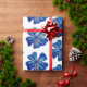 Papel de enrolamento para presentes especiais com flores azuis, padrão aquarela. É fácil adicionar cores de fundo personalizadas à sua escolha.