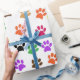 Um papel colorido de embrulho de pata que é perfeito para um presente destinado a um animal de estimação ou a alguém que gosta de animais.