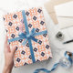 Laranja, branco e profundo, marinho/roxo quase preto em grande escala inspirado na Ásia, lembrando o padrão de transporte. Daí o nome Quase Shippo. Eu comprei isto no conjunto de papel de embalagem de três, e é lindo!