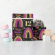 Arco-íris brilhante Dourado e cor-de-rosa no papel embrulho de aniversário preto. Personalize o nome e a idade de um 12 personalizado. Enrole seus presentes em papel glamouroso para sua garota de aniversário.