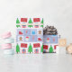 Um papel de embrulho projetado com alguns símbolos de Natal em fundo quadrado em tons azuis. Feliz Natal!