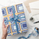 Presente Papel de empacotamento de padrão em quadrados azui