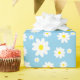 Este belo papel de embrulho personalizado apresenta um padrão margarida giro em uma cor azul clara de fundo, perfeito para Dia de as mães ou qualquer outra ocasião.