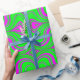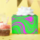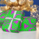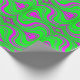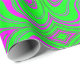 Ondas fluorescentes e fusões, padrões psicodélicos e modernos - design original de Alma Wad em verde brilhante e magenta impressos num papel de embrulho.