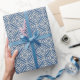 Forma de diamante concêntrico de cor aquosa azul com pontos azuis. Este papel de embrulho seria excelente para muitas ocasiões diferentes, como presente de casamento, presente de aniversário ou presente de aniversário.