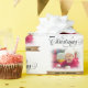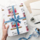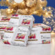 Papel de empacotamento de texto de foto personalizado. Adicione sua própria foto e texto e design seu próprio padrão exclusivo com nossos elementos design. Natal em tipografia suave, cobertura de fotos com geada branca esmaecendo em torno da foto, fazem um festival de inverno. Seu texto personalizado está equipado com dentro da banda de fita do ouro. Modelo de fotografia: Andrew Lozovyi / Depositphotos.com