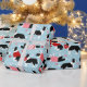 A borda do Dia de os namorados em branco veste colinas vermelhas, cor-de-rosa e bolinhas branca e suéteres cardíacos com estampas de pata espalhadas e seta em um fundo azul.