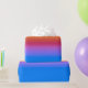 Um gradiente de cor com camadas de amarelo, laranja, cor-de-rosa, roxo, azul com foco na camada de cor-de-rosa-negrito.